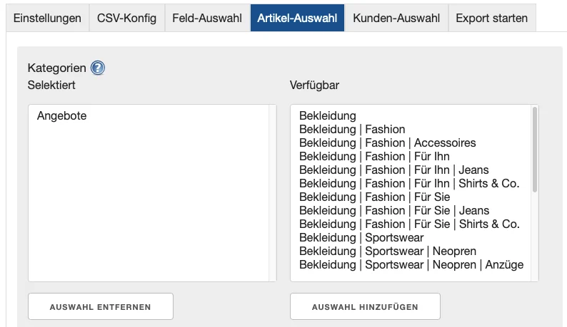 Präzise Filter-Funktionen: Exportieren Sie nur das, was Sie wirklich verkaufen wollen. Filtern Sie Ihre Exporte nach Kategorien, Herstellern, Lagerbeständen oder Preisbereichen. So behalten Sie die volle Kontrolle über Ihre Marketing-Kosten.