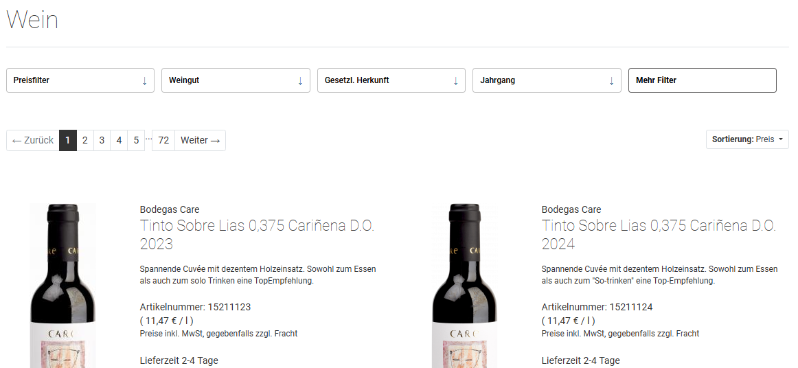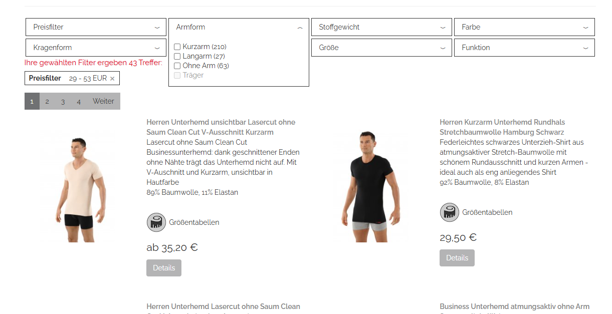 Der Preisfilter wird als Slider dargestellt. Dadurch ist ein Filterbereich mit Auswahl „von-bis“ möglich.